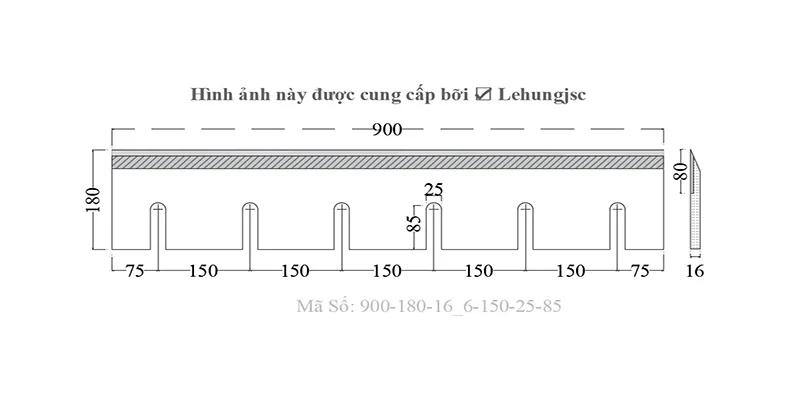 - Khoảng cách tâm rãnh đều: 150 mm